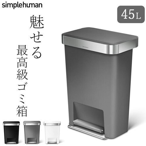 シンプルヒューマン ゴミ箱 プラスチック レクタンギュラー ステップカン 45L simplehuman 正規販売店 【 クッチーナ 】 送料無料 ゴミ箱 45リットル ふた付き ペダル おしゃれ スリム ごみ箱 キッチン リビング ダストボックス 大型 大容量