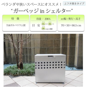 商品番号:mttc0001ガーベッジ in シェルター 幅70cm 商品詳細 品名ガーベッジ in シェルター 幅70cmサイズ【本体】(約)幅700×奥行500×高さ665(mm) 【開口寸法】(約)幅640×奥行440(mm)重量12kg材質【本体】ガルバリウム鋼板付属品アジャスター付き容量200L備考返品交換は未使用のものに限らせていただきます。
