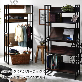5段 ラック ハンガーラック クローゼット 本棚 食器棚 レンジ台 木製 収納棚 オープンラック おしゃれ パソコンデスク 勉強机 大人 ワードローブ スリム スチール棚 棚 北欧 シェルフ ゴミ箱 上 収納 ユニットシェルフ リビング キッチン レンジラック テレワーク