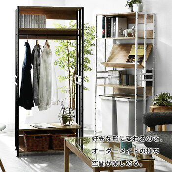 お洒落なラックとしてはもちろん、ハンガーラックにもなる収納棚。