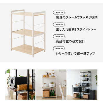 ラック マルチラック キッチンラック レンジラック レンジ台 収納 キッチン収納 収納棚 棚 エムール 商品詳細 品名 HEIM-ヘイム- キッチンラック 60cm サイズ ロータイプ:約幅60×奥行43.2×高さ90cm 組成 フレーム:スチール(紛体塗装) 棚板:合成樹脂化粧繊維板(メラミン) カラー ブラック・ホワイト 耐荷重 固定棚:約20kg(棚板1枚当たり) 可動棚/約25kg(棚板1枚当たり) スライドトレー:約10kg 組立所要時間 約15分 製造国 中国製 配送 こちらの商品は送料無料です。