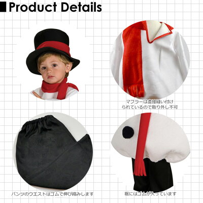 マフラーは直接縫い付けられているので取り外し不可、パンツのウエストはゴムで伸び縮みします ※100%ポリエステル ※セット内容 ・ワンピース ・パンツ ・ハット モデル着用のその他衣装は含まれません。