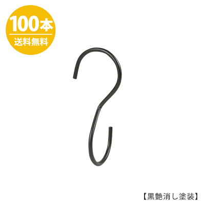 S字フック Sカン 90度ひねり SFA-T125H125mm ブラックつや消し塗装 100本セットプロ仕様 【安心の日本製】Sカン アイアン 黒つや消し塗装 ブラック収納 省スペース おしゃれ インテリア 雑貨送料無料 ハンガーのタヤ