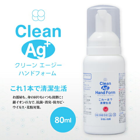 銀イオン水【携帯用 持ち歩き】【送料無料※沖縄離島除】Clean Ag+ クリーンエージー 泡ハンドフォーム 80ml <※【銀イオン 手洗い 日本製 携帯用 ノンアルコール Ag+ 空間洗浄 安心 安全 赤ちゃん ペット使用可能】※のし包装・メッセージカード対応不可