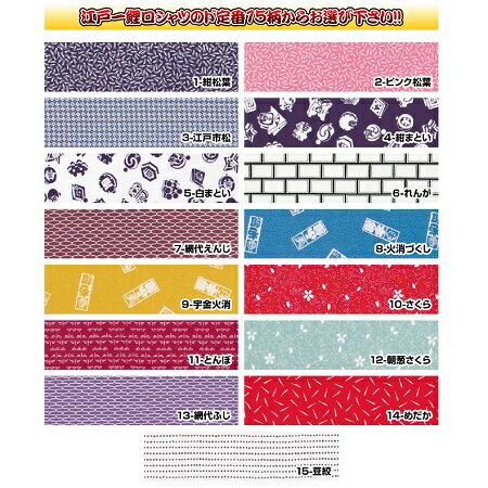 しかもなんと鯉口は一流ブランド 東京江戸一の鯉口シャツ16柄より選択可能! 【紺松葉】 【ピンク松葉】 【白まとい】 【紺まとい】 【江戸市松】 【れんが】 【網代えんじ】 【火消づくし】 【宇金火消し】 【さくら】 【浅葱桜】 【網代ふじ】 【めだか】 【豆絞】 【とんぼ】 【白晒】から お選びいただける超豪華フルセットです!! 完全フル装備7点セット+送料無料+最短で翌日着の商品も! これさえあればお祭りの主役間違いなしですね! 腹掛、股引のタグ表示が2種類ございます。