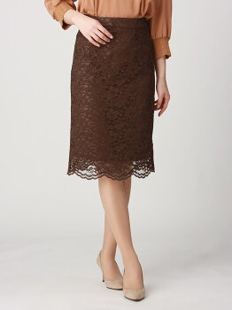 Littlechic フラワーコードレース タイトスカート 通年用 ブラウン(色柄コード:JK) ホワイト・ザ・スーツカンパニー